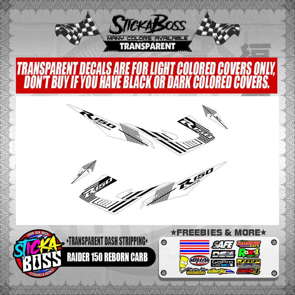 RAIDER 150 REBORN CARB DECALS ( TRANSPARENT DASH STRIPPING )【WITH FREEBIES】
