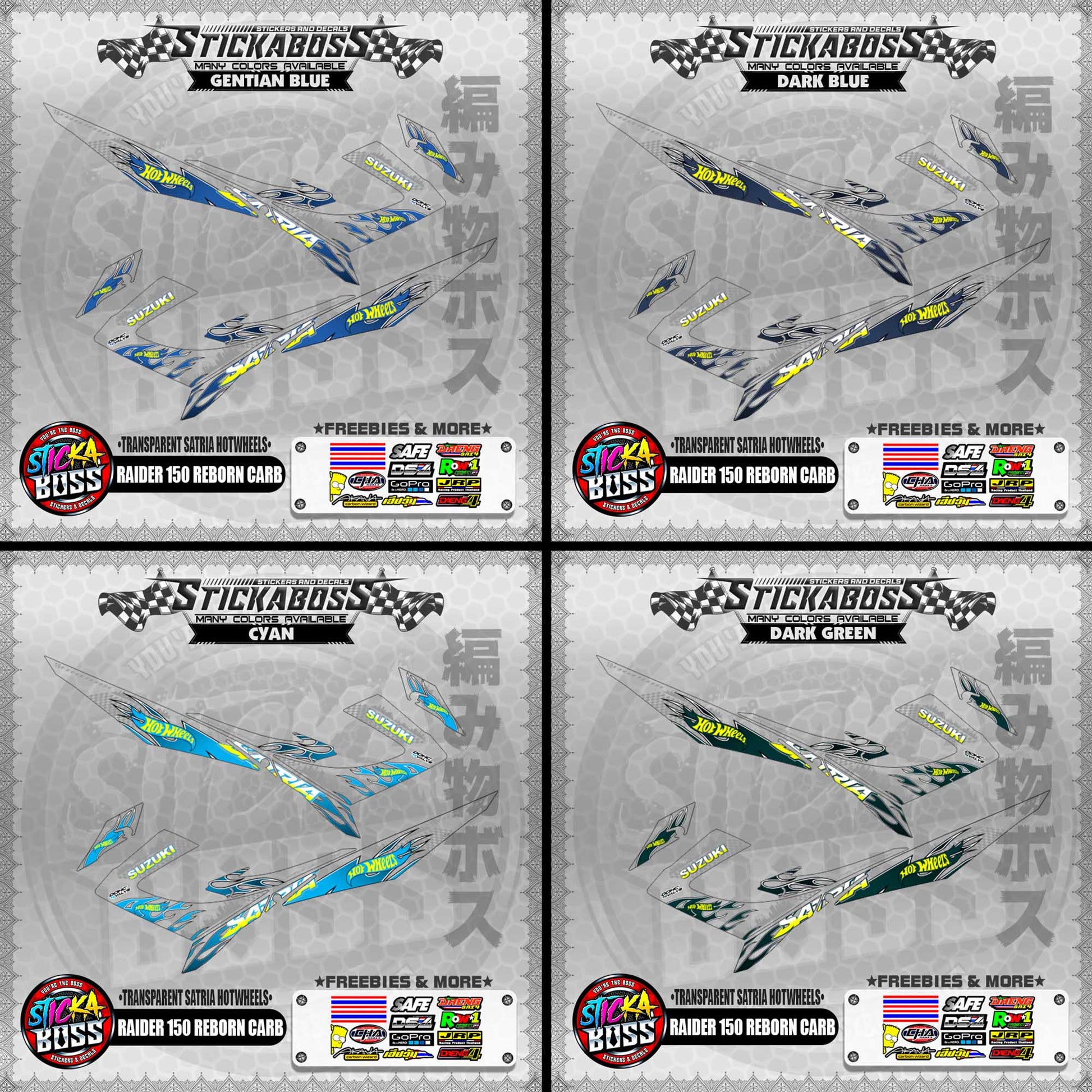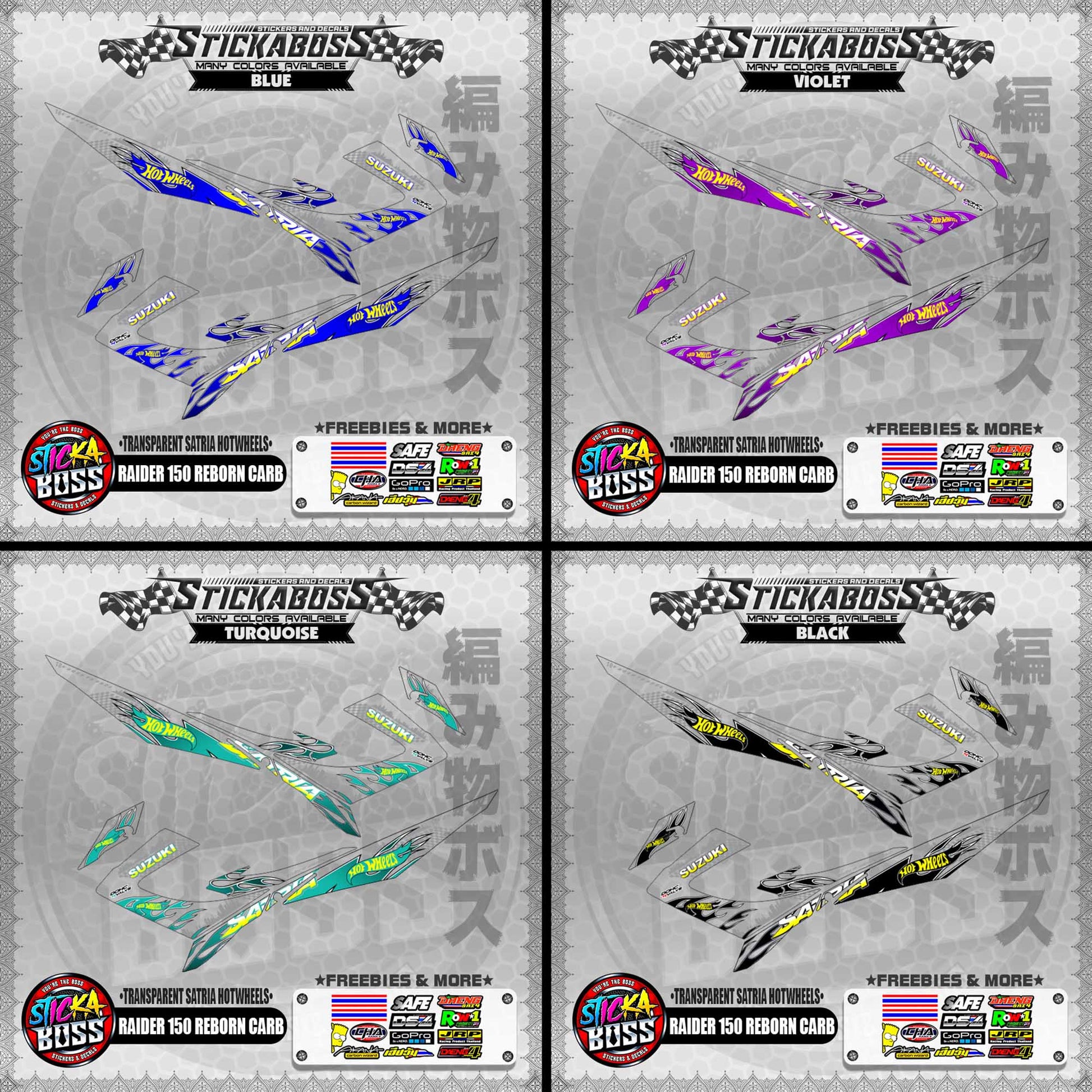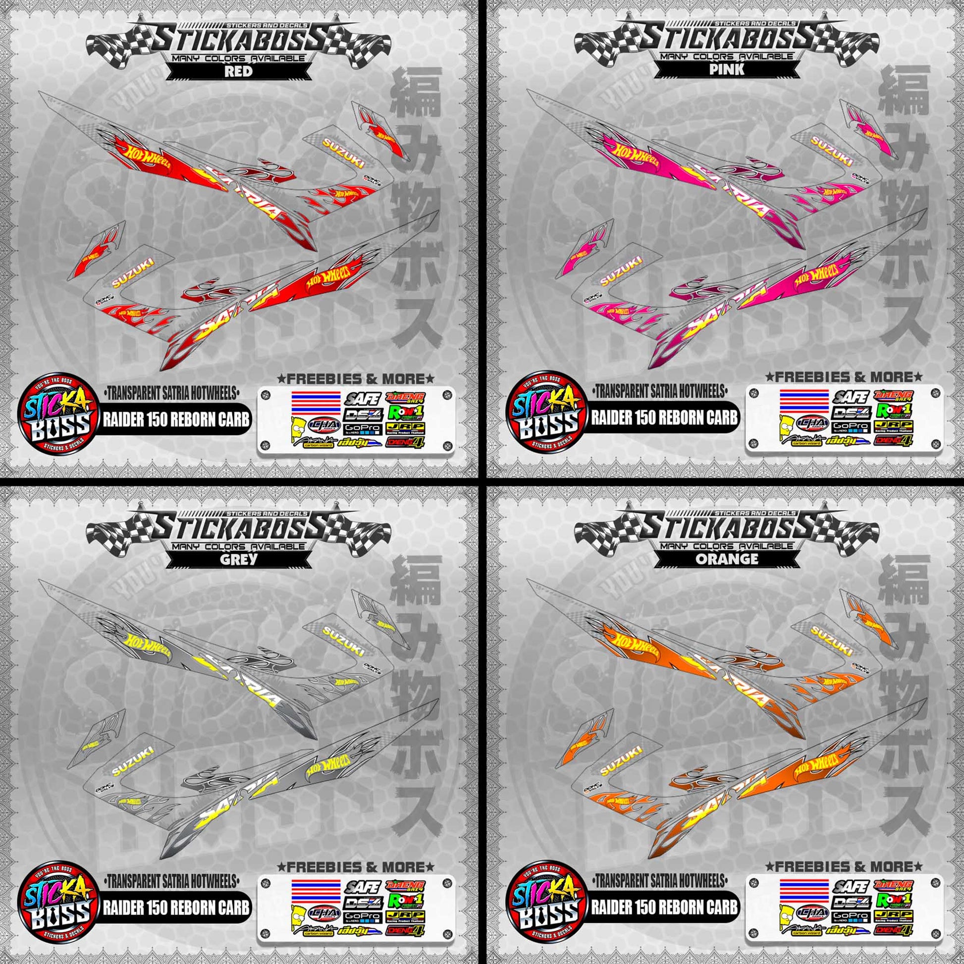 【PREMIUM UV PRINT】TRANSPARENT RAIDER 150 REBORN CARB DECALS ( SATRIA HOTWHEELS )【WITH FREEBIES】